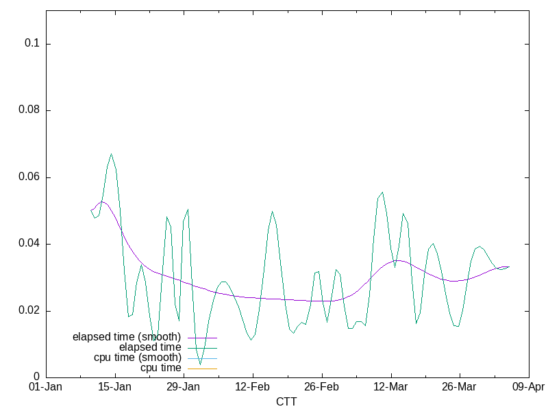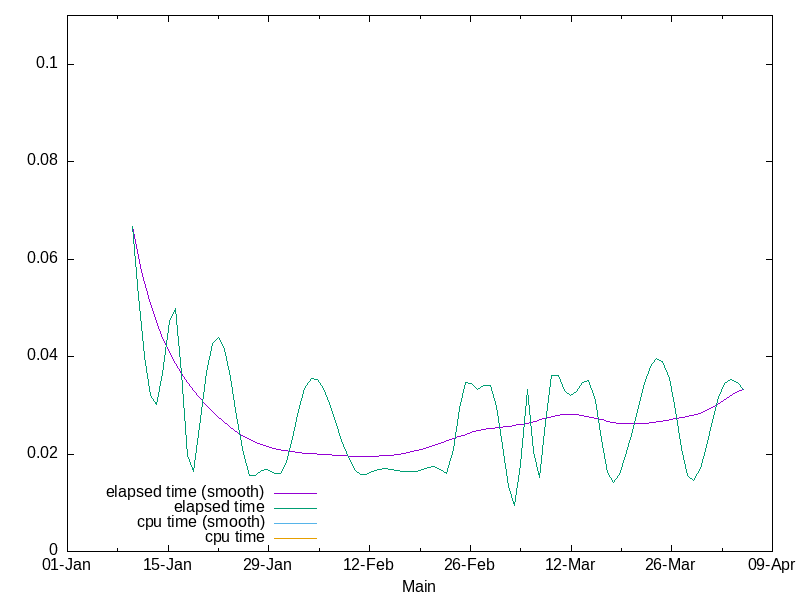 - 0.020s elapsed time, 0.021s cpu time, 0.000s GC time, factor 1.05