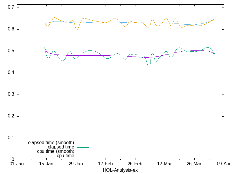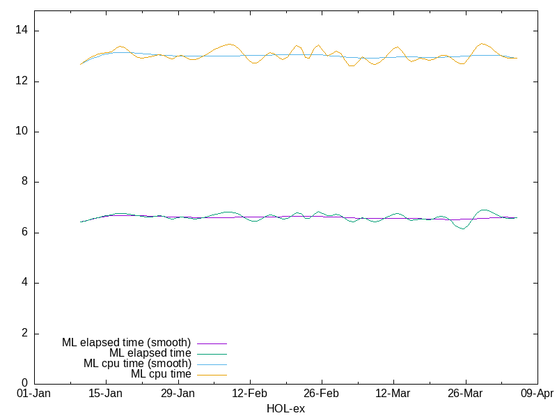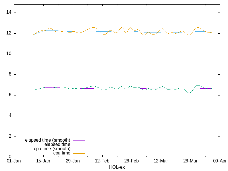 - HOL-ex (0:06:39 elapsed time, 0:12:05 cpu time, factor 1.82)