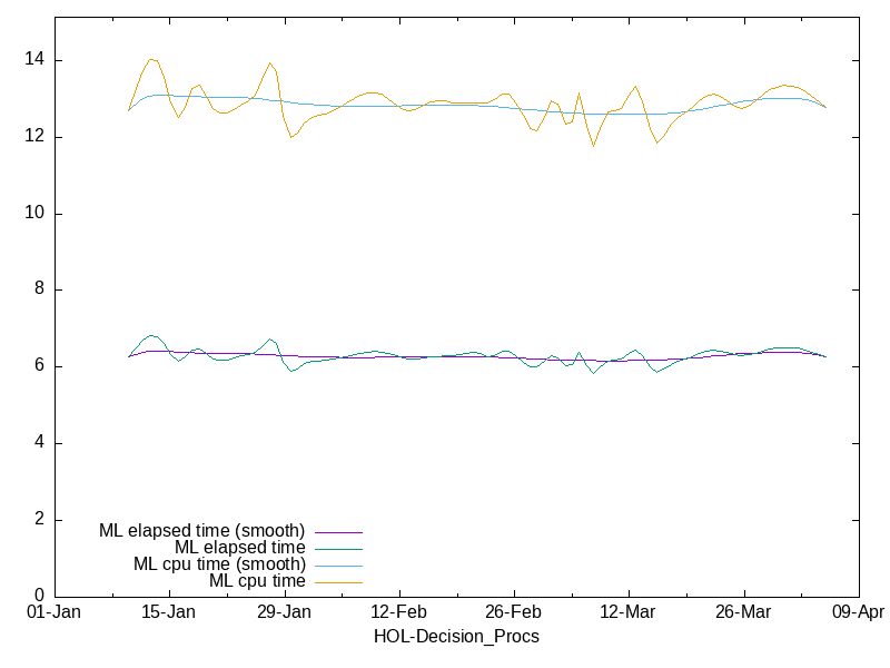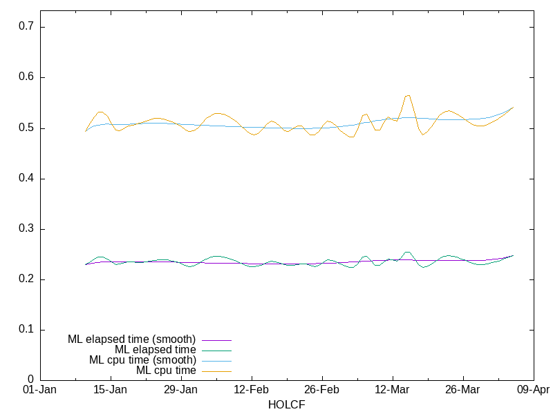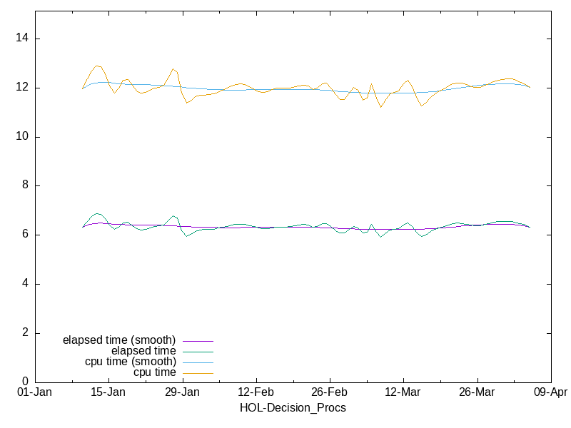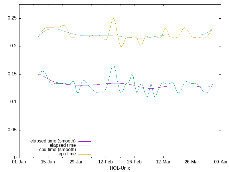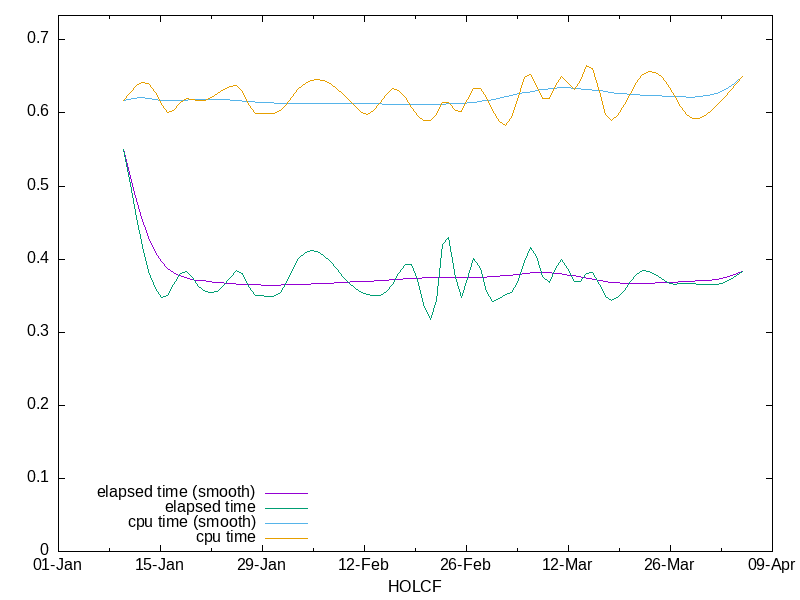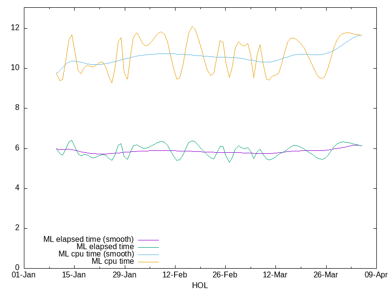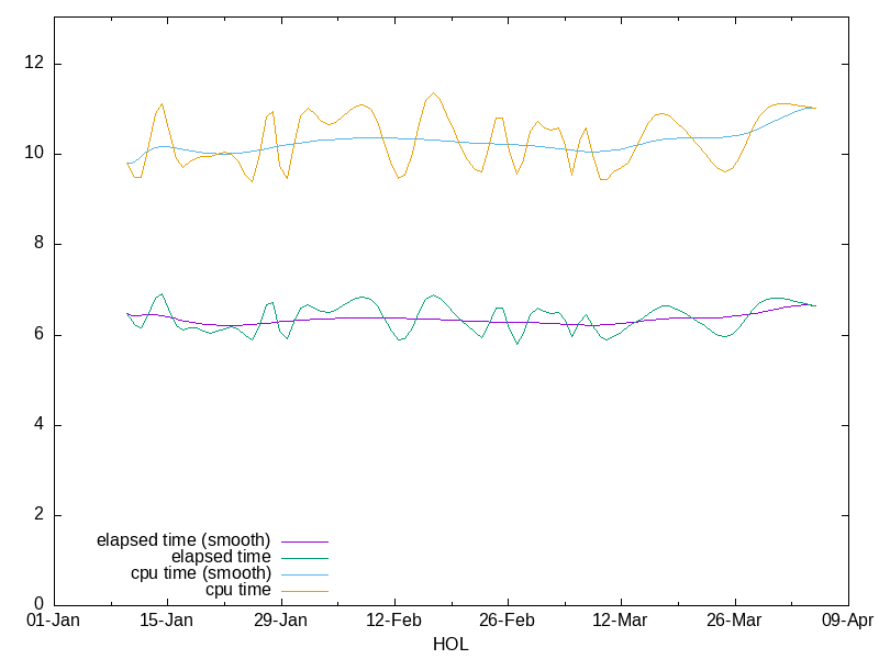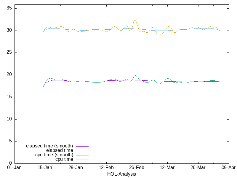 - HOL (0:06:38 elapsed time, 0:11:02 cpu time, factor 1.66)