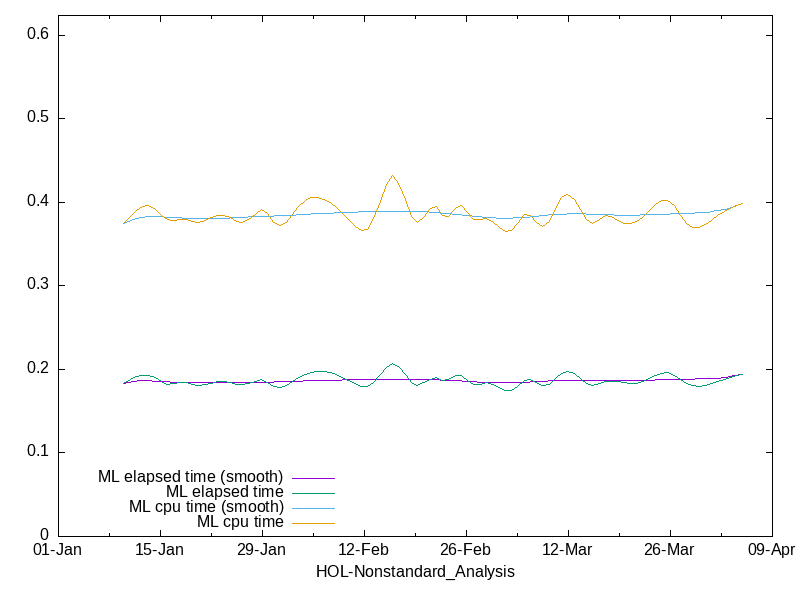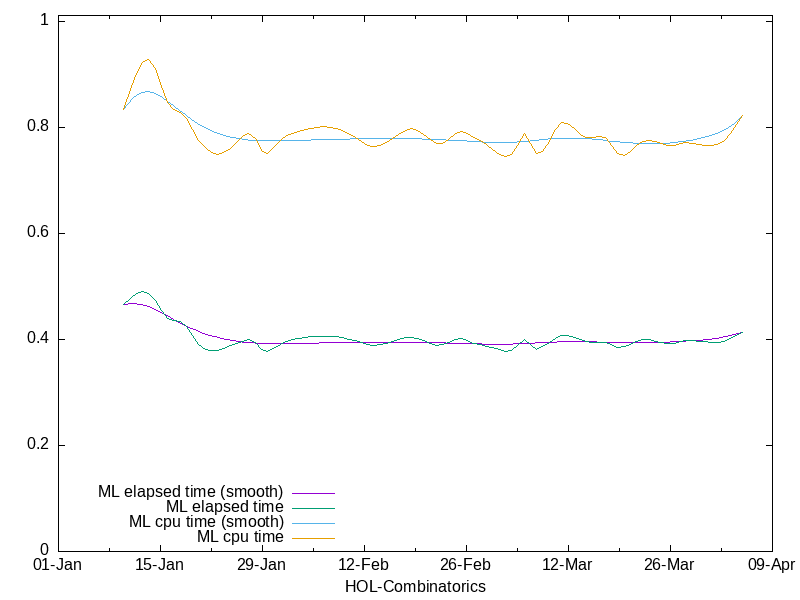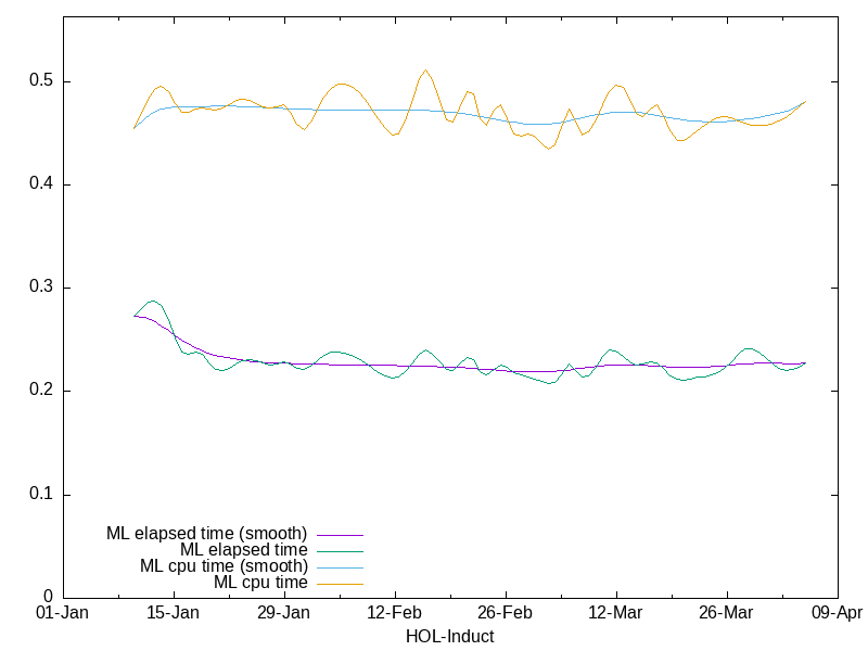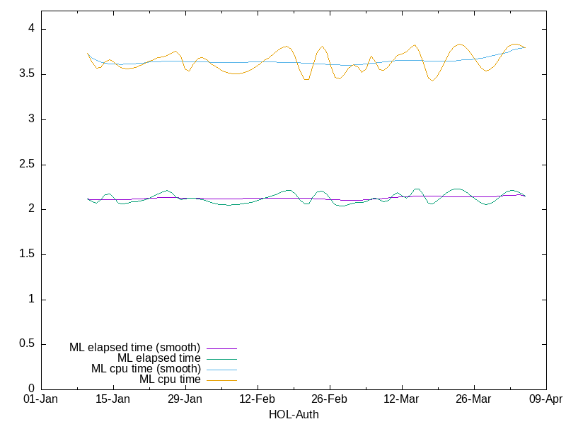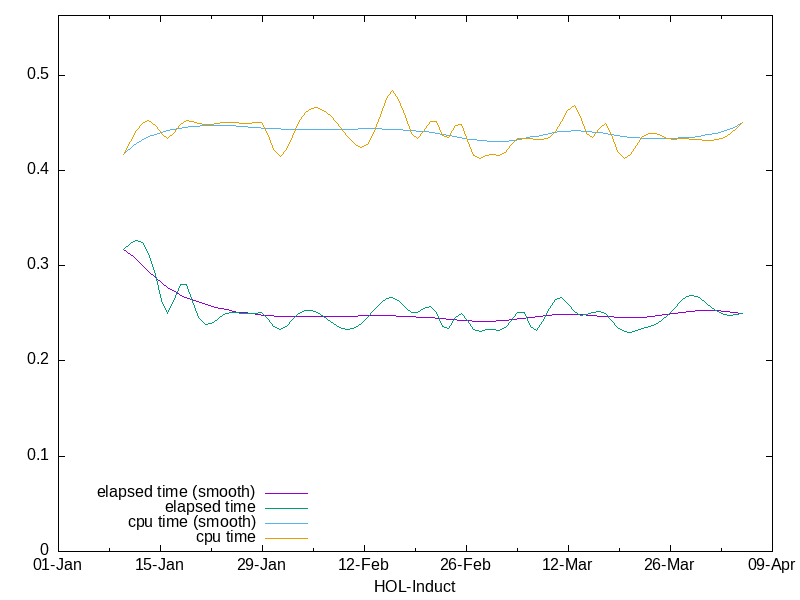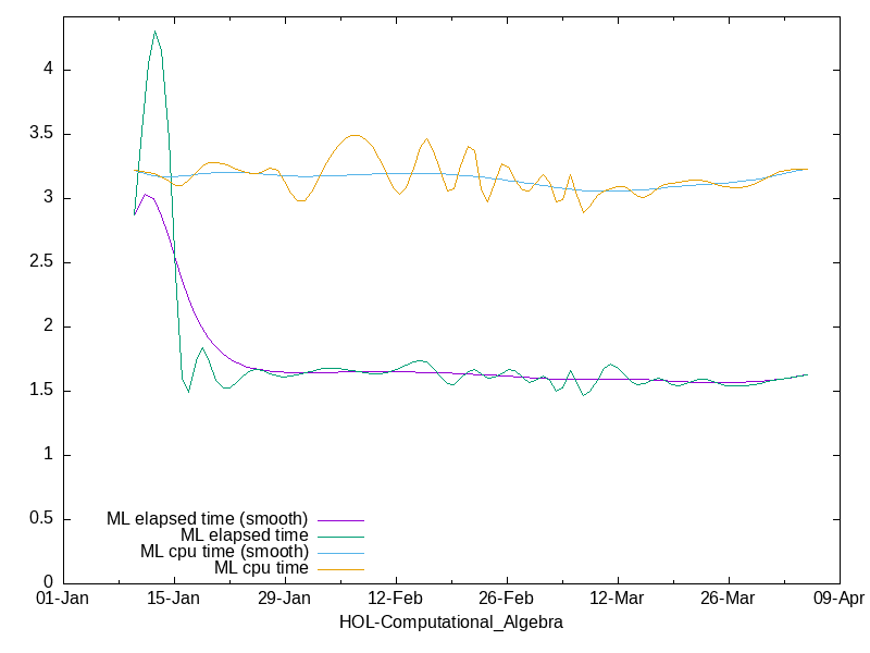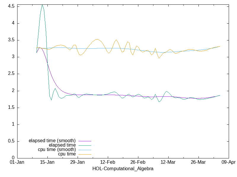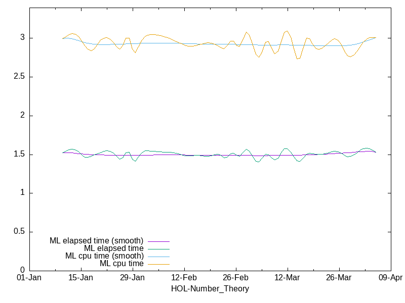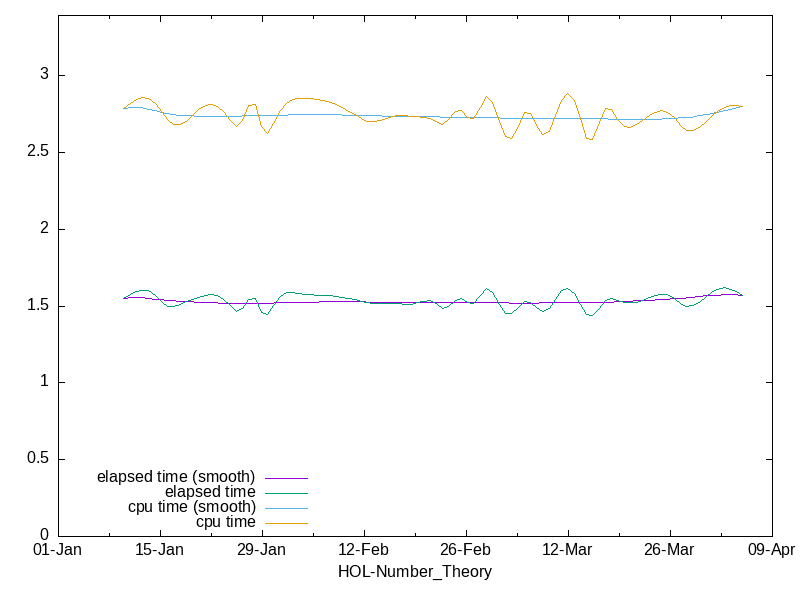 - HOL-Number_Theory (0:01:34 elapsed time, 0:02:48 cpu time, factor 1.79)