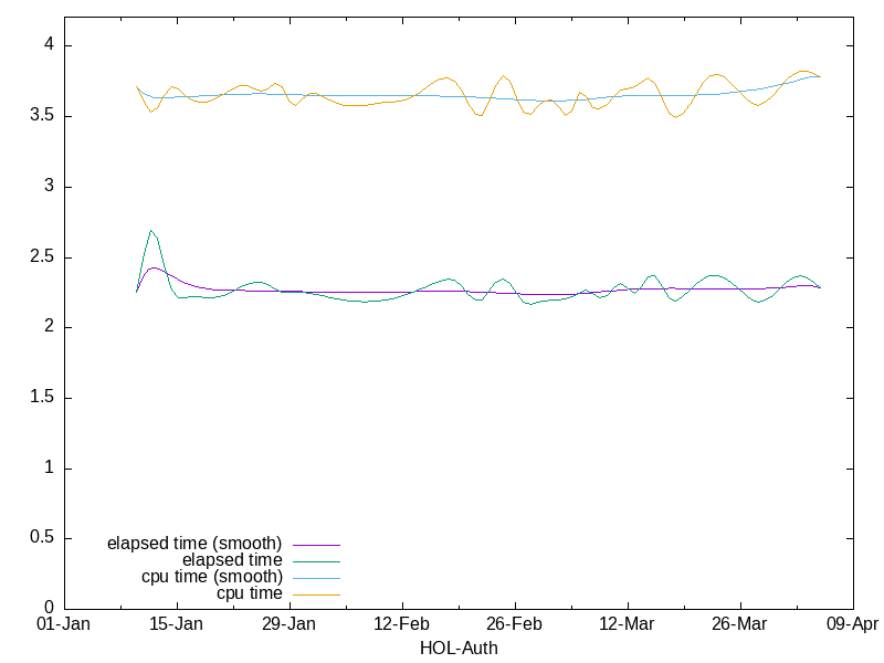 - HOL-Auth (0:02:17 elapsed time, 0:03:47 cpu time, factor 1.66)