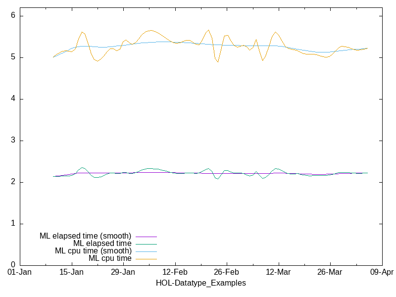 - HOLCF-ex (0:00:05 elapsed time, 0:00:09 cpu time, factor 1.80)