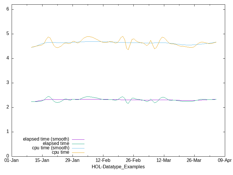 - HOL-Unix (0:00:08 elapsed time, 0:00:14 cpu time, factor 1.75)