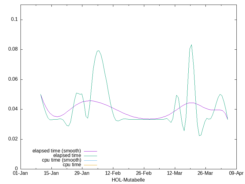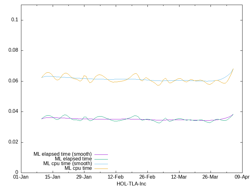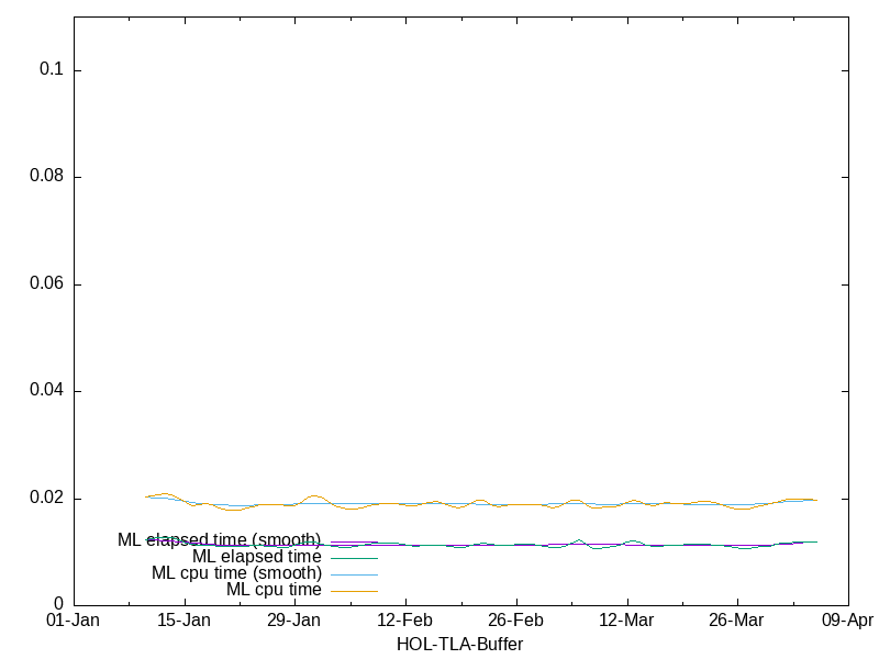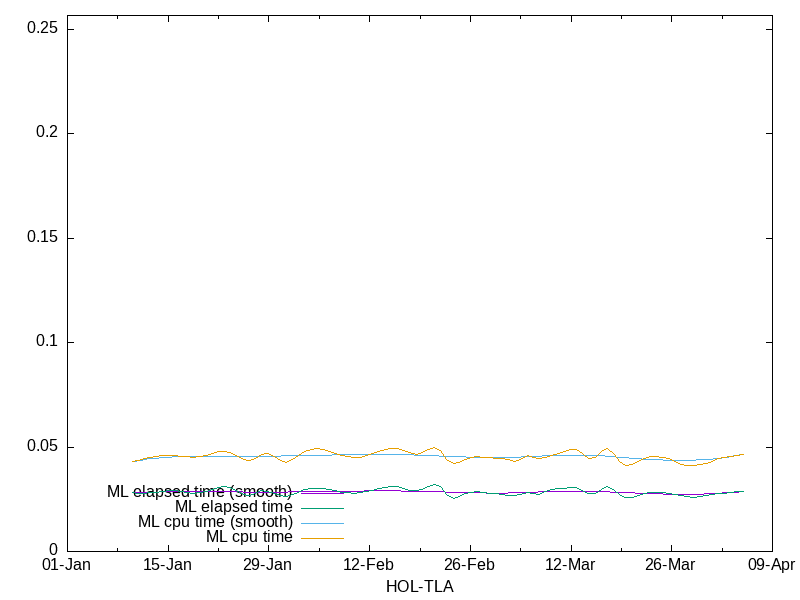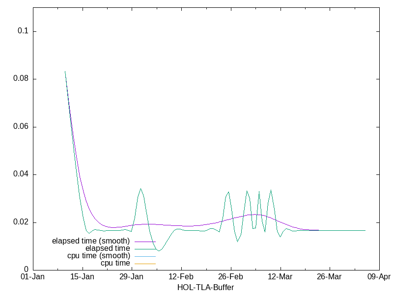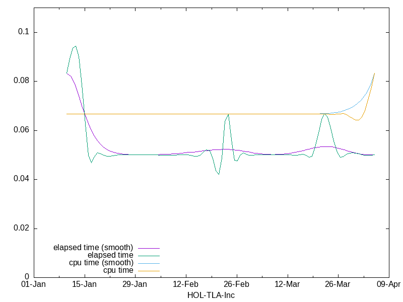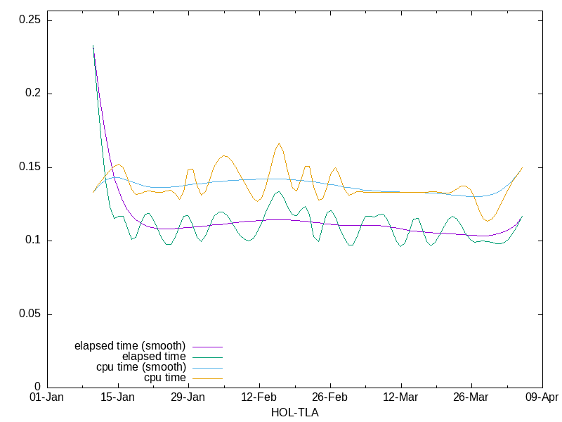 - HOL-TLA (0:00:07 elapsed time, 0:00:09 cpu time, factor 1.29)