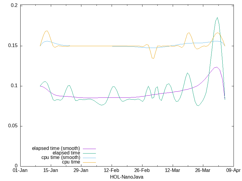 - HOL-NanoJava (0:00:05 elapsed time, 0:00:09 cpu time, factor 1.80)