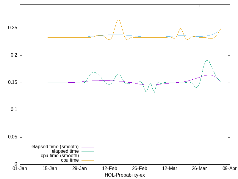 - HOL-Probability (0:02:40 elapsed time, 0:04:40 cpu time, factor 1.75)