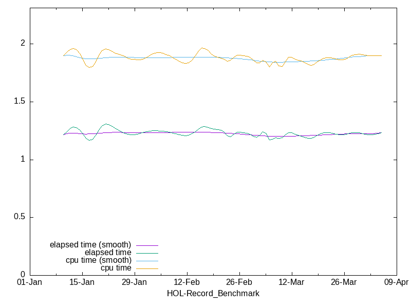 - HOL-Record_Benchmark (0:01:14 elapsed time, 0:01:54 cpu time, factor 1.54)