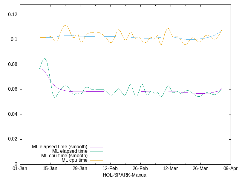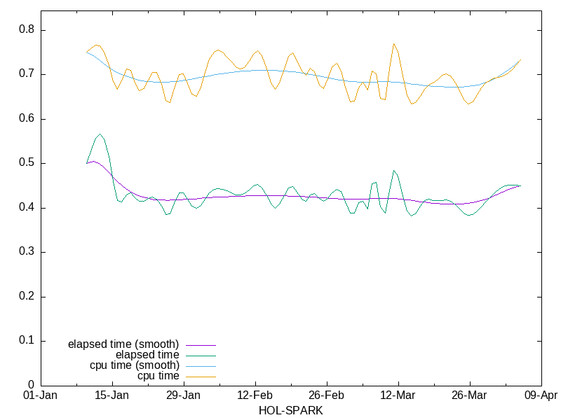 - HOL-SPARK (0:00:27 elapsed time, 0:00:44 cpu time, factor 1.63)