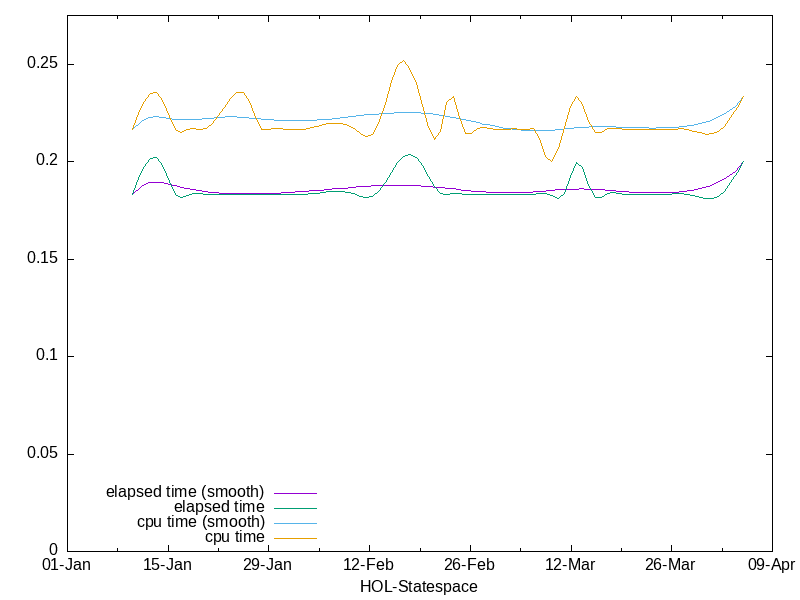 - HOL-Statespace (0:00:12 elapsed time, 0:00:14 cpu time, factor 1.17)