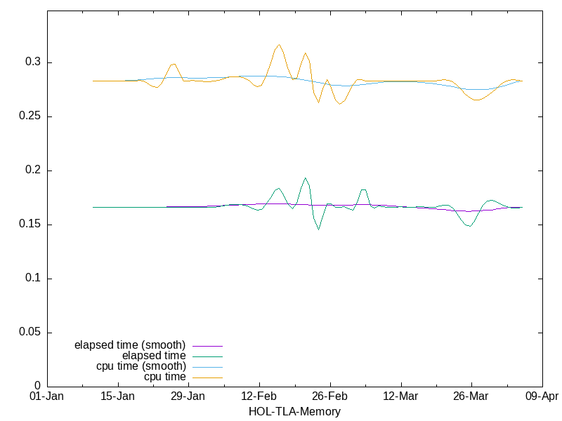 - HOL-TLA-Memory (0:00:10 elapsed time, 0:00:17 cpu time, factor 1.70)
