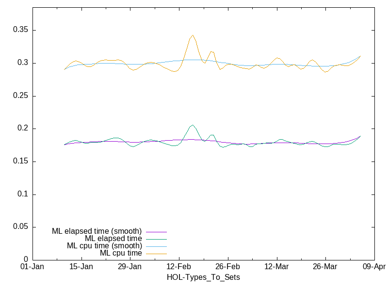 - HOLCF (0:00:23 elapsed time, 0:00:39 cpu time, factor 1.70)