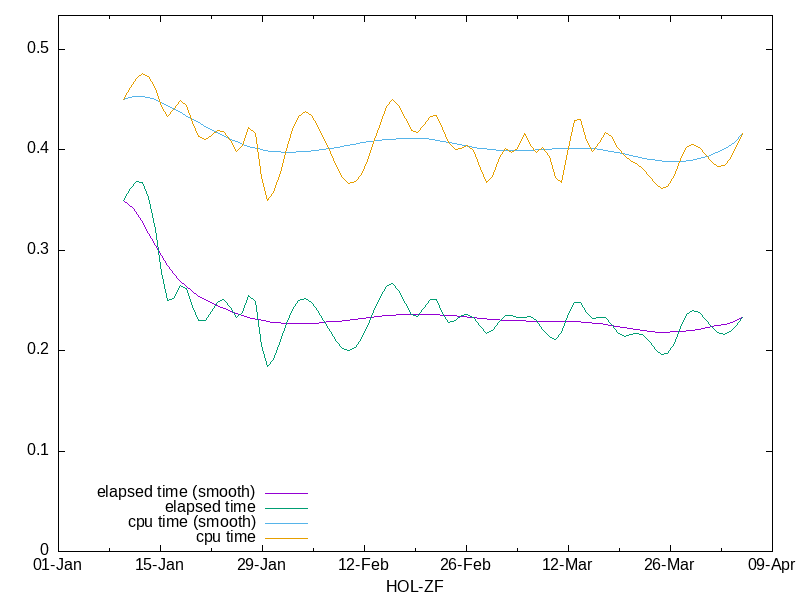 - HOL-ZF (0:00:14 elapsed time, 0:00:25 cpu time, factor 1.79)