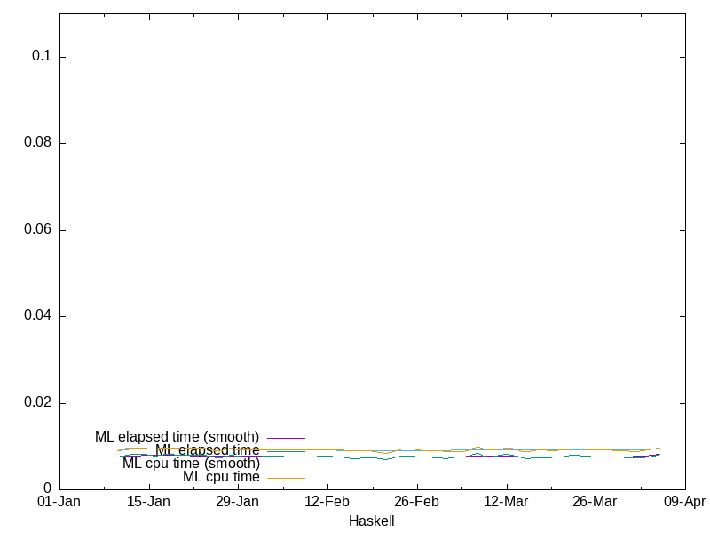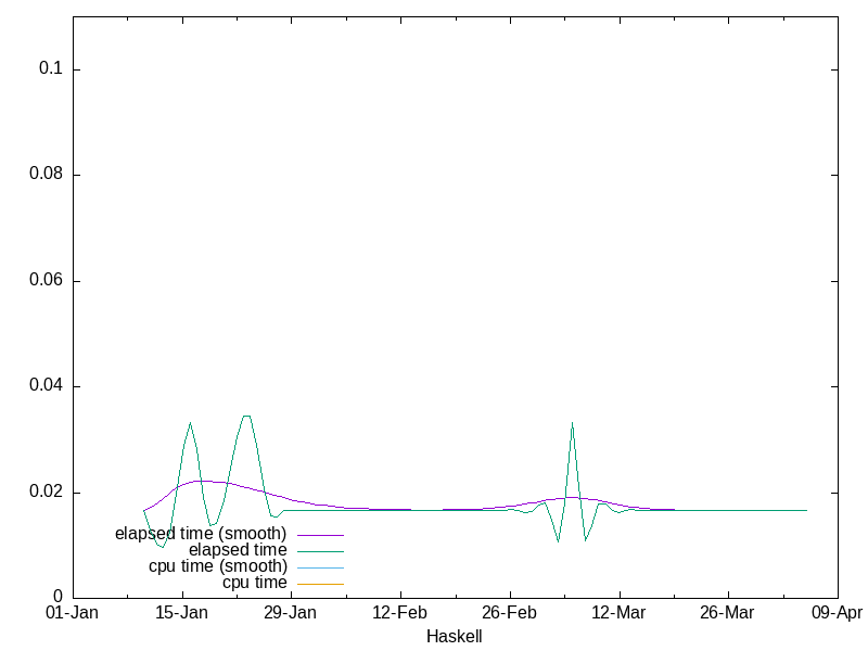 - 0.164s elapsed time, 0.223s cpu time, 0.000s GC time, factor 1.36