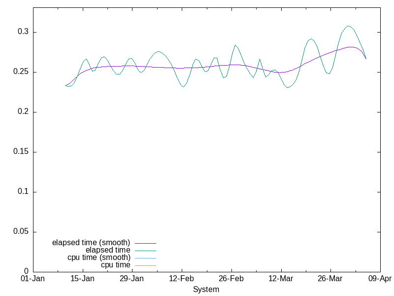 - 0.319s elapsed time, 0.350s cpu time, 0.000s GC time, factor 1.10